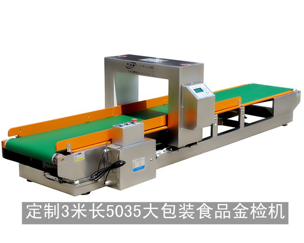 功能特點:非標定制的食品金屬檢測機,用于探測條狀小包袋食品添加劑金屬異物檢測??商綔y所有的金屬異物!