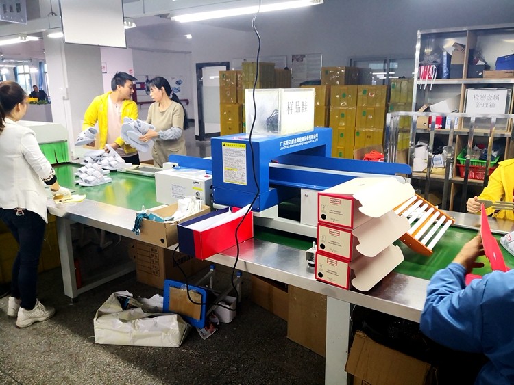 隨著競爭越來越厲害。工廠都要打起精神來仔細應(yīng)對客戶要求。金屬利器管控是最后也是最重要的一個環(huán)節(jié)。連之新流水線上檢針機為企業(yè)提供了金屬利器管控檢針檢測保障。不會額外占用通道,只需要將檢針機放到流水線上即可在線進行檢針作業(yè)。案例為厚街溪頭某誠鞋廠使用現(xiàn)場。