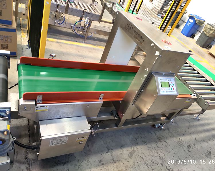 連之新DLM-509Y2010型金屬檢測機使用現(xiàn)場,有金屬的物品可以做到自動檢測并剔除。