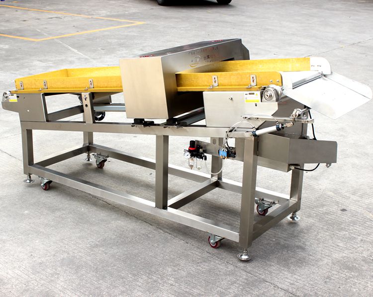 翻板式食品金屬檢測機是一款數(shù)字式金屬檢測機,能檢測所有的金屬異物,圖中金檢機是為一家花生類休閑食品生產廠家設計制作的金屬檢測控制單元,用于銜接于炒鍋出冷卻臺下滑進入此金屬檢測機進行金屬異物管控,節(jié)省人力提升產品質量。